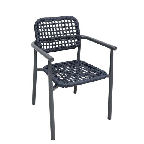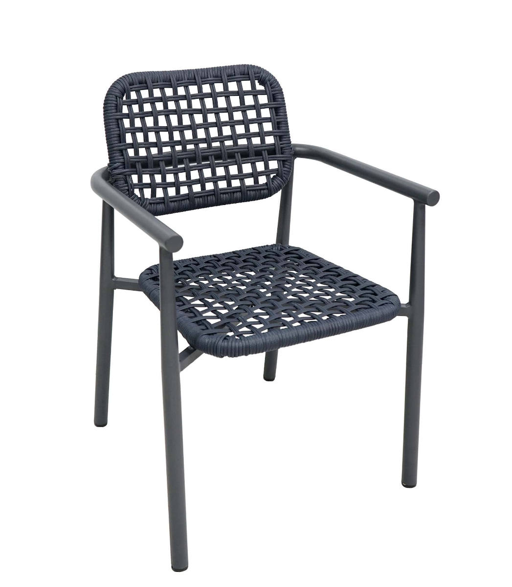 Moderní židle klasického typu s područkami. Má robustní hliníkový rám s práškovou barvou a venkovní syntetický výplet. Je snadno stohovatelná. Ideální židle pro restaurace a kavárny!